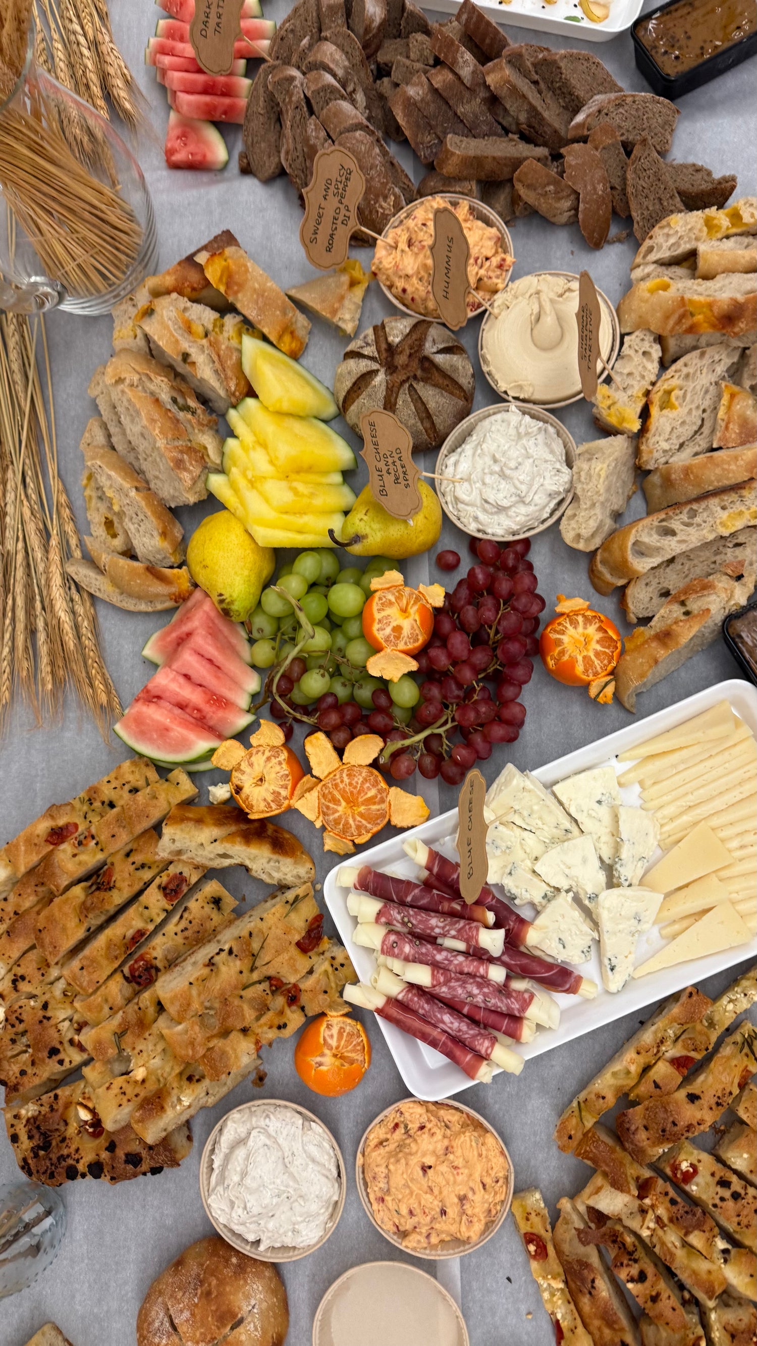 Our approach blends artisanal baking, seasonal produce, and elegant yet relaxed styling. Think rustic boards, vibrant colors, handmade spreads, warm focaccia straight from the oven, and details that make guests pause and smile.