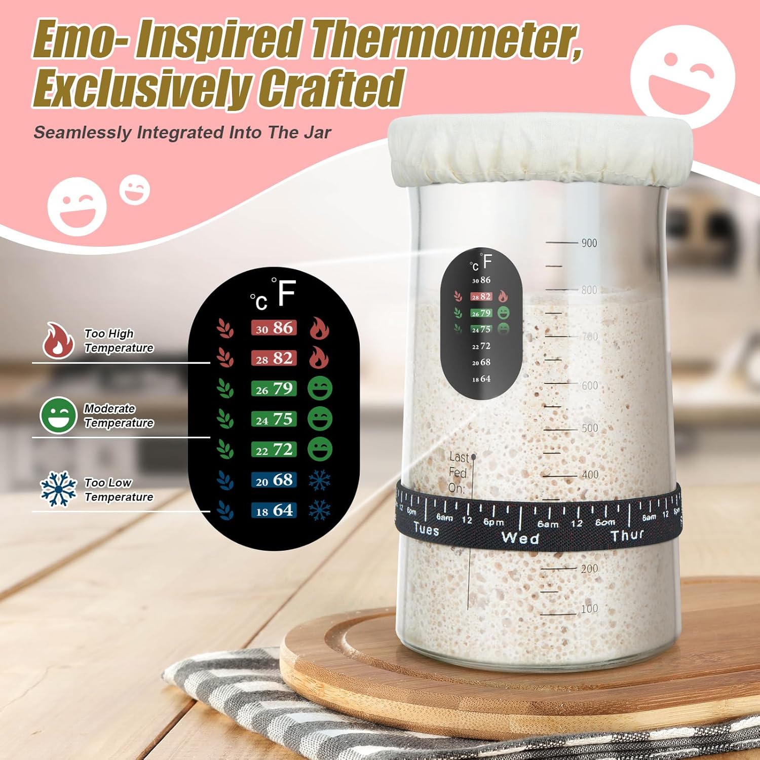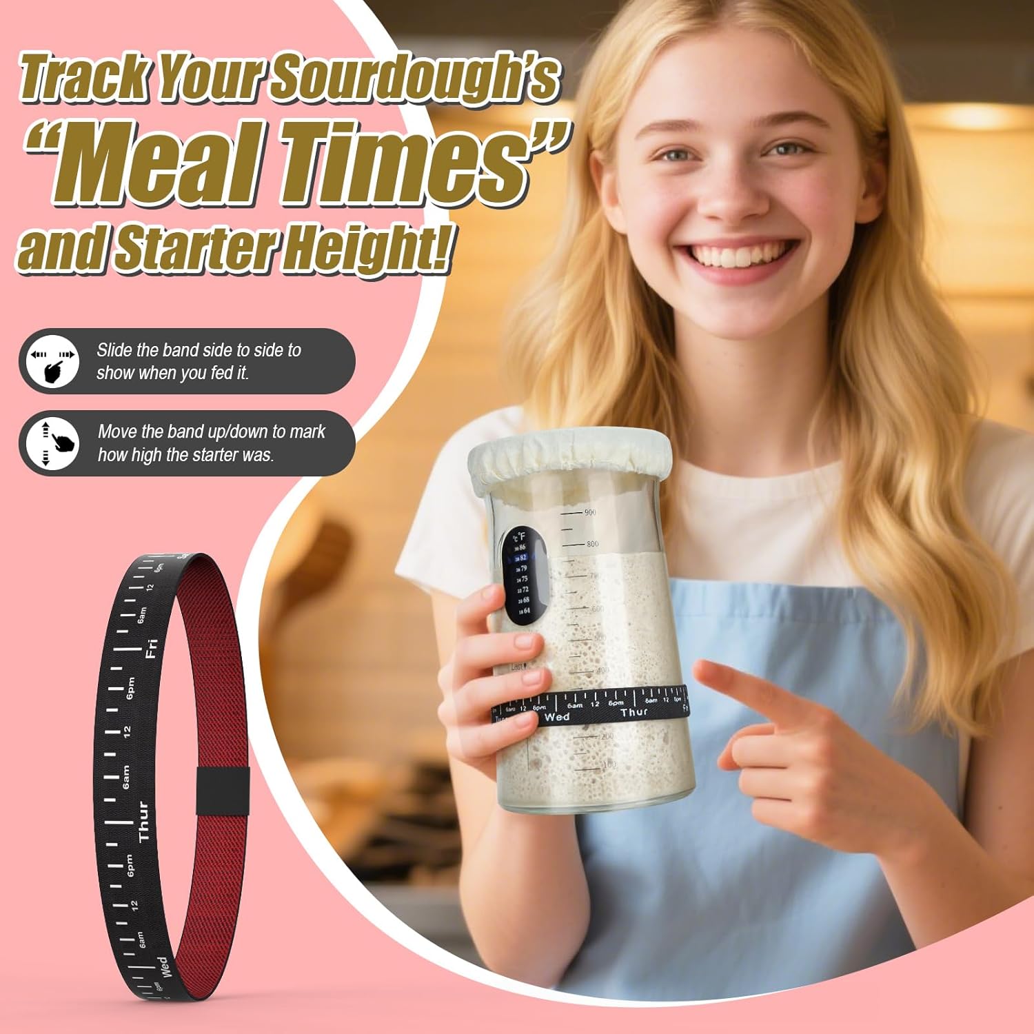 - All-In-One Kit with Precision Tracking Tools: Equipped with clear volume markings, net weight indicators, and a temperature sticker, it enables accurate fermentation monitoring. The elastic feeding band, marked with days of the week, eliminates guesswork and helps you track feeding schedules with ease.