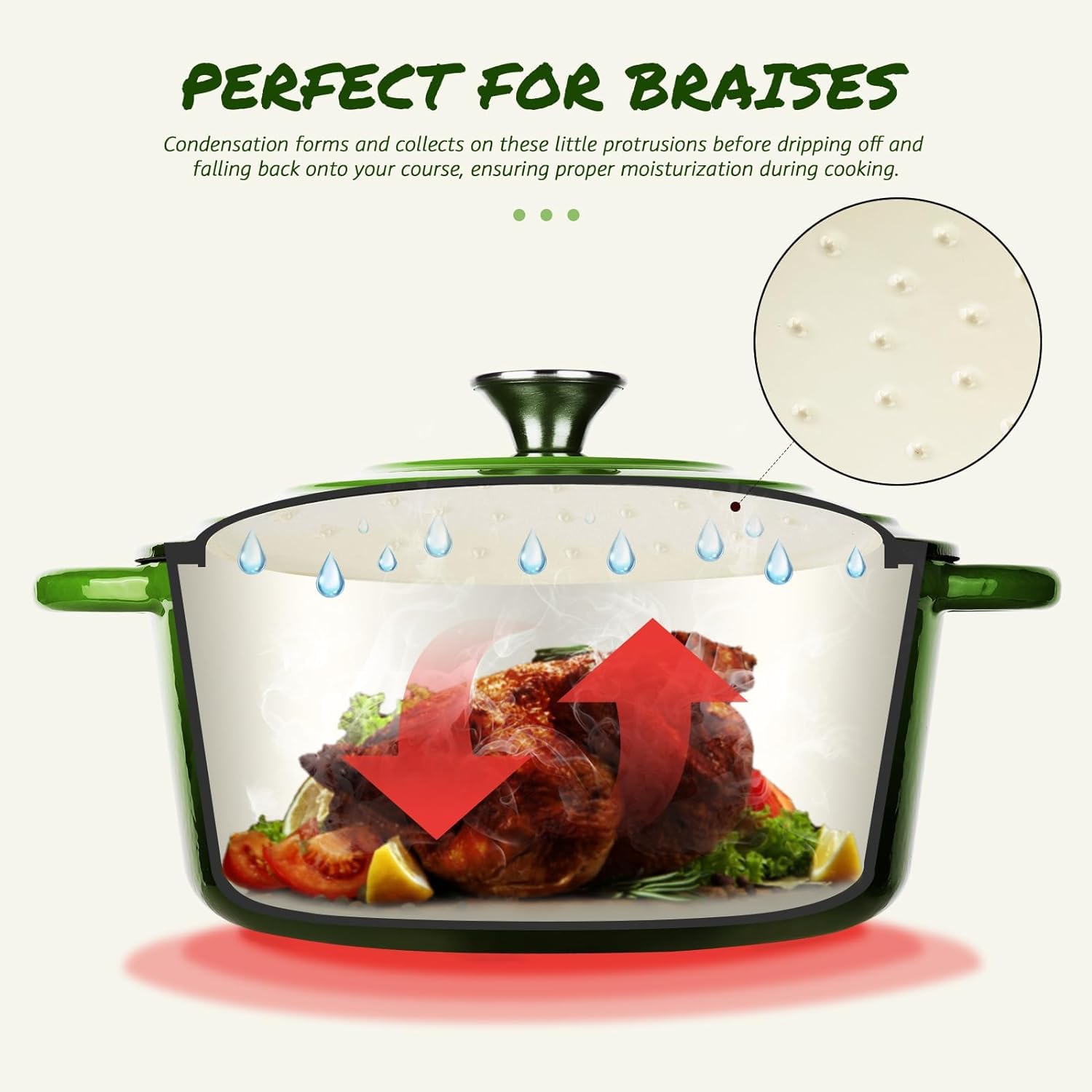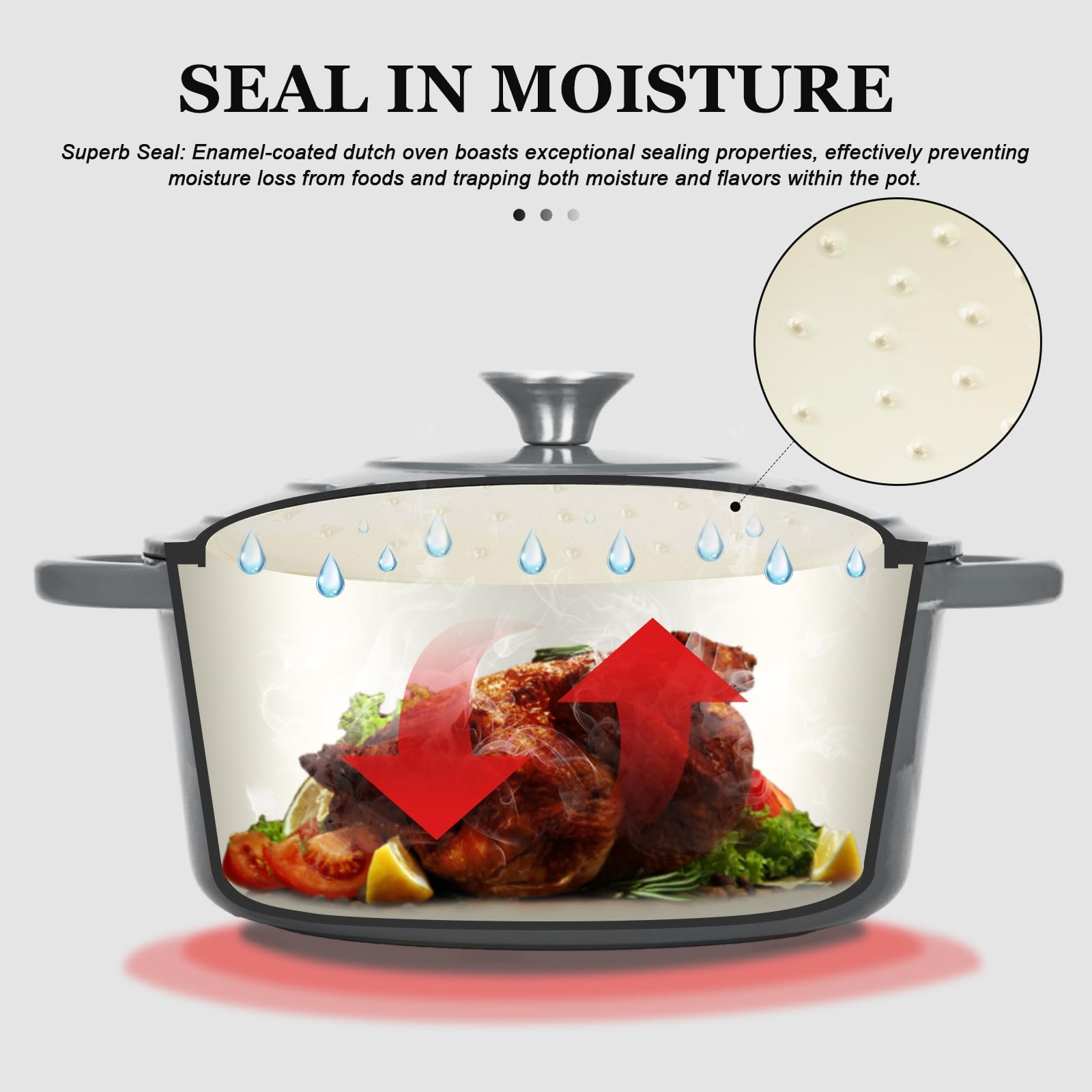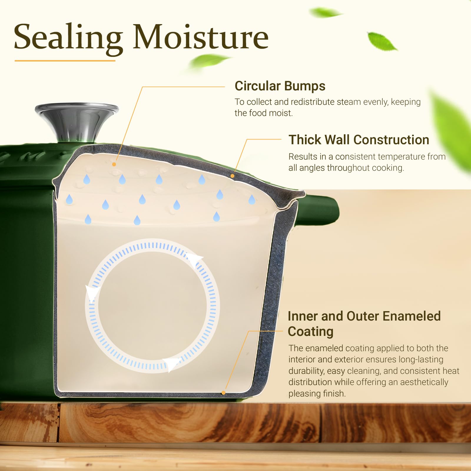 - Effortless Cleaning & Safety First: The flat and smooth enamel surface not only delivers a superior cooking experience but also makes cleaning a breeze. Easily remove food residues with a gentle wipe from a soft sponge or cloth. Additionally, we've included a cotton heat-resistant cap, ensuring a comfortable grip and safeguarding you from burns when handling the pot's handles and lid.
