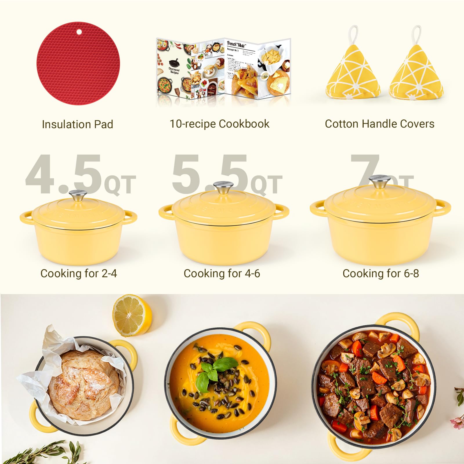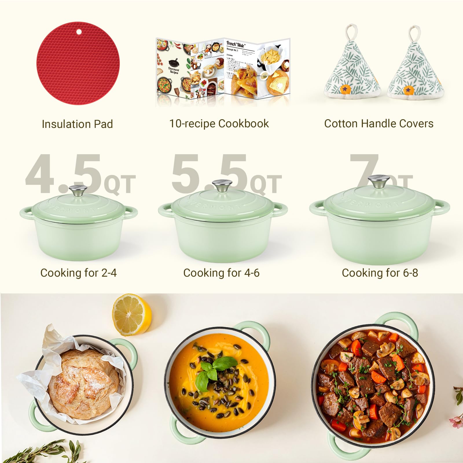 Overmont Enameled Cast Iron Dutch Oven - 5.5QT Pot with Lid Cookbook & Cotton Potholders - Heavy-Duty Cookware for Braising, Stews, Roasting, Bread Baking white